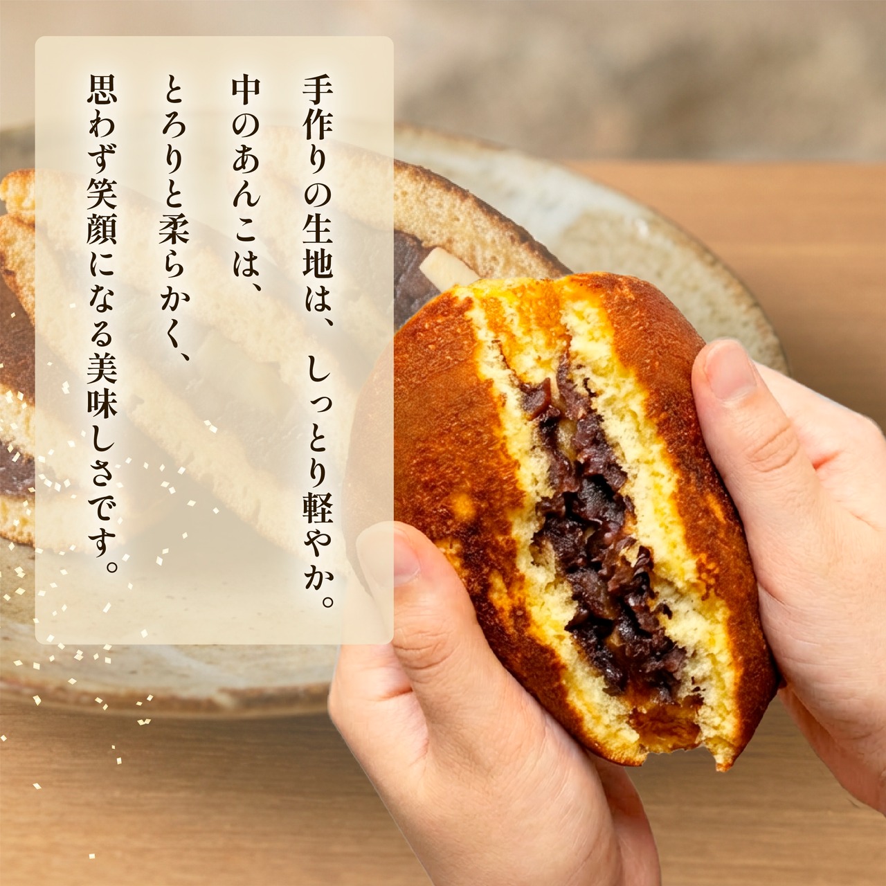 あんこのやまか本店で一枚一枚丁寧に焼き上げ、美味しさそのまま常温でお届けします。